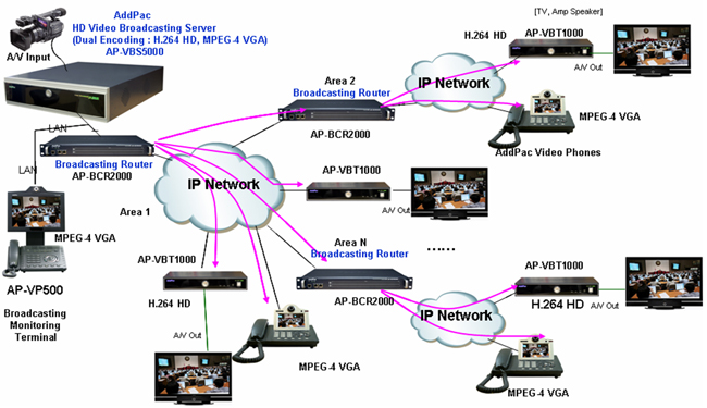 Ãʰí¼Ó ÀÎÅÍ³Ý °°Àº ³×Æ®¿öÅ©ÀÇ ±¤´ë¿ªÈ(BcN; Broadband convergence Network)¿¡ µû¶ó VoIP(Voice over IP) À½¼º µ¥ÀÌÅÍ ÅëÇÕ ¹°°áÀ» ³Ñ¾î °íǰÁú ¿µ»óÅë½ÅÀÇ ¼¼»óÀÌ º»°ÝÀûÀ¸·Î ÆîÃÄÁö°í ÀÖ½À´Ï´Ù. ±×µ¿¾È À½¼ºµ¿º¸ ¹× SD ¿µ»ó¹æ¼Û ½Ã½ºÅÛ¿¡ ¸Ó¹°°í ÀÖ¾ú´Ù¸é, ÀÌÁ¦ HD¿µ»óºÐ¾ß·Î °í°³¸¦ µ¹¸®½Ê½Ã¿À. ¸ÖƼ¹Ìµð¾î¿Í µ¥ÀÌÅÍ Åë½Å ÅëÇÕÀÇ ¼±µÎÁÖÀÚ ¾ÖµåÆÅÀÌ ¿µ»ó¡¤À½¼º¡¤µ¥ÀÌÅÍ ÅëÇÕÀÇ »õ·Î¿î ºñÀüÀ» Á¦½ÃÇÕ´Ï´Ù. ¾ÖµåÆÅÀÇ IP ±â¹Ý HDºñµð¿À¹æ¼Û ¼Ö·ç¼ÇÀº °í¼º´É HDºñµð¿À¹æ¼Û ¼¹ö¸¦ Áß½ÉÀ¸·Î ¹æ¼Û¶ó¿ìÅÍ ¹× HDºñµð¿À ¹æ¼Û Å͹̳ÎÀÌ ¿¬°áµÅ ¿©·¯ ÁöÁ¡À¸·Î °íÈÁúÀÇHD¿µ»ó ¹× À½¼º¹æ¼ÛÀ» ½Ç½Ã°£ ¼ÛÃâÇÏ´Â Â÷¼¼´ë HD ¹æ¼Û¼¹ö ¼Ö·ç¼ÇÀÔ´Ï´Ù. AP-VBS5000Àº IP ±â¹ÝÀÇ HD ºñµð¿À ¹æ¼Û ¼¹ö Àåºñ·Î MPEG-4 ºñµð¿ÀÄÚµ¦ ¹× Àü¼Û ´ë¿ªÆøÀ» Àý°¨Çϸ鼵µ °íÈÁúÀ» Á¦°øÇÏ´Â Â÷¼¼´ë ºñµð¿À ÄÚµ¦ÀÎ H264 ºñµð¿À ÄÚµ¦À» Áö¿øÇÕ´Ï´Ù. 2-Æ÷Æ®ÀÇ 10/100/1000Mbps ±â°¡ºñÆ® ÀÌ´õ³Ý ÀÎÅÍÆäÀ̽º, 1-Æ÷Æ® RS-232C ÄÜ¼Ö ÀÎÅÍÆäÀ̽º, µà¾ó ä³Î ºñµð¿À/¿Àµð¿À ÀÔ·Â ÀÎÅÍÆäÀ̽º, ¹æ¼Û ¸Å´ÏÀú S/W µé·Î ±¸¼ºµÅ ÀÖ½À´Ï´Ù. ÀÇȸÁß°è. ¼³±³¹æ¼Û. ¿ø°Ý°ÀÇ. »ç³»¹æ¼Û µî ´Ù¾çÇÑ IP ±â¹ÝÀÇ ½Ç½Ã°£ HD ±Þ ¿µ»ó ¹æ¼Û ºÐ¾ß¿¡ Àû¿ëÇÒ ¼ö ÀÖ½À´Ï´Ù. Çϵå¿þ¾î ŸÀÔÀÇ °í¼º´É ºñµð¿À ¹æ¼Û¼¹ö ¾ÖµåÆÅ HD ±Þ IP ºñµð¿À ¹æ¼Û ¼Ö·ç¼ÇÀº AP-VBS5000 HD ºñµð¿À ¹æ¼Û ¼¹ö¿Í AP-BCR2000 ¹æ¼Û ¶ó¿ìÅÍ, AP-VBT1000 HD ¹æ¼Û Å͹̳εé·Î ±¸¼ºµÆ½À´Ï´Ù. AP-VBS5000 HD ºñµð¿À ¹æ¼Û ¼¹ö´Â ½Ì±Û¼Ò½º µà¾óÄÚµ¦ ÀÎÄÚµù ±â´ÉÀ» žÀçÇÏ¿© AP-VBT1000 HD¹æ¼Û Å͹̳Π¹× ¾ÖµåÆÅ ¿µ»óÀüȱ⠰°Àº ±âÁ¸ÀÇ MPEG-4 ±â¹ÝÀÇ ¹æ¼Û Å͹̳εµ ¼ö¿ëÇÒ ¼ö ÀÖµµ·Ï ¼³°èµÇ¾ú½À´Ï´Ù. ¾ÖµåÆÅ IPºñµð¿À ¹æ¼Û¼¹ö´Â ¾ÖµåÆÅÀÌ Á÷Á¢ ¼³°è ¡¤ °³¹ßÇÑ °í¼º´É DSP Çϵå¿þ¾î¿Í °í¼º´É ÇÁ·Î¼¼¼¸¦ °áÇÕÇØ HD°íǰÁú ¿µ»óÀ» ½Ç½Ã°£À¸·Î ÀÎÄÚµù¡¤Àü¼ÛÇÒ ¼ö ÀÖ½À´Ï´Ù. ½Ç½Ã°£ HD ¶óÀÌºê ¿µ»ó¡¤À½¼ºµ¿º¸ ½Ã´ë °³¸· ¾ÖµåÆÅ HD±Þ IP ºñµð¿À ¹æ¼Û¼¹ö´Â ¶Ù¾î³ ¼º´É°ú ¾ÈÁ¤¼ºÀ» ±â¹ÝÀ¸·Î Áö±Ý±îÁöÀÇ ¿µ»ó ¼Ö·ç¼Ç¿¡¼ ²Þ²Ù±â ¾î·Á¿ü´ø °íǰÁúÀÇ ½Ç½Ã°£ ¿µ»óÀÇ ¼¼°è¸¦ ÆîÃÄÁÝ´Ï´Ù. AP-VBS5000 HDºñµð¿À ¹æ¼Û ¼¹ö¿Í ±âº» ÄÄÆ÷³ÍÆ®ÀÎ AP-BCR2000 ¹æ¼Û¶ó¿ìÅÍ, AP-VBT1000 HDºñµð¿À ¹æ¼Û ´Ü¸»Àº Çϵå¿þ¾î ÄÚµ¦°ú °í¼º´É RISC CPU ±â¹ÝÀÇ ÀÓº£µðµå ½Ã½ºÅÛÀ¸·Î ¼³°èµÅ °íǰÁú ¿µ»óÀ» ½Ç½Ã°£ Àü¼Û¡¤Àç»ýÇÒ ¼ö Àִ ÷´Ü ÀåºñÀÔ´Ï´Ù. H.264, MPEG4µîÀ¸·Î ¾ÐÃàµÈ ¿µ»óÀº ¾ÖµåÆÅÀÇ Ã·´Ü QoS ¾Ë°í¸®ÁòÀ» ÅëÇØ µ¥ÀÌÅÍ ÅëÇÕ¸Á¿¡¼µµ ¾ÈÁ¤µÈ °íǰÁú ¿µ»óÀ» Áö¿øÇÕ´Ï´Ù. H.264¾ÐÃàÄÚµ¦ ±âÁØÀ¸·Î HD(1280x720)±Þ ¿µ»óÀ» ÃÊ´ç 30ÇÁ·¹ÀÓ±îÁö ó¸®ÇØ 1~4Mbps Àü¼Û ´ë¿ªÆøÀ¸·Î HDTV±Þ ¿µ»óÀ» IP ³×Æ®¿öÅ© ȯ°æ¿¡¼ ½ÇÇöÇß½À´Ï´Ù. ƯÈ÷ ³×Æ®¿öÅ© »óÅ¿¡ µû¶ó ÇÁ·¹ÀÓ ·¹ÀÌÆ®¿Í ÀûÀýÇÑ ºñÆ® ·¹ÀÌÆ®¸¦ ÁöÁ¤ÇÒ ¼ö ÀÖ¾î ³·Àº ´ë¿ªÆøÀÇ È¯°æ¿¡¼ºÎÅÍ ³ôÀº Àü¼Û ´ë¿ªÆøÀÇ ³×Æ®¿öÅ© ȯ°æ±îÁö Æø³Ð°Ô ¼ö¿ëÇÕ´Ï´Ù. ¸ÖƼij½ºÆÃ ¹× ¾îµå¹ê½º QoS ±â´É ¾ÖµåÆÅ HD ±Þ IP ºñµð¿À ¹æ¼Û ¼Ö·ç¼ÇÀº IGMP ¸ÖƼij½ºÆ® ÇÁ·ÎÅäÄݰú ¼¶¼¼ÇÑ QoS(Quality of Service) ±â¼ú µî IP ¿µ»óµ¿º¸¹æ¼Û ȯ°æ¿¡ ƯÈÇÑ ¼ºñ½º»Ó ¾Æ´Ï¶ó, Àå¾Ö´ëºñ ¹× ·Îµå ¹ë·±½ÌÀ» À§ÇÑ VRRP(Virtual Router Redundancy Protocol) ¼ºñ½º¿¡ À̸£±â±îÁö ÷´Ü ±â´É°ú ¼ºñ½º¸¦ Áö¿øÇÕ´Ï´Ù. µû¶ó¼ ³×Æ®¿öÅ© ȯ°æ¿¡ µû¶ó ³ªÅ¸³¯ ¼ö ÀÖ´Â ´Ù¾çÇÑ À¯ÇüÀÇ À̽´¸¦ À¯¿¬ÇÏ°Ô ¼ö¿ëÀÌ °¡´ÉÇÕ´Ï´Ù.