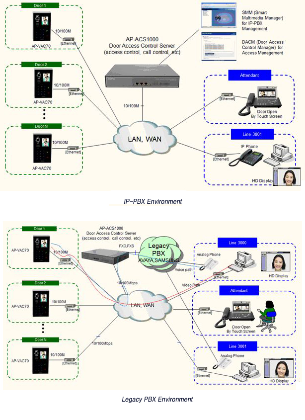 AP-VAC70 ±â¾÷¿ë HD ±Þ IP ºñµð¿À µµ¾îÆùÀº Çö°ü ¶Ç´Â ÀÔ±¸¿¡ ¼³Ä¡µÇ¾î ÀÎÅͳÝÀ» ÀÌ¿ëÇØ ºñµð¿À ȸéÀ» º¸¸é¼ ÃâÀÔÅëÁ¦ ±â´ÉÀ» ¼öÇàÇÏ´Â IP ºñµð¿À µµ¾îÆùÀÔ´Ï´Ù. SIP/H.323 Ç¥ÁØ VoIP ½Åȣó¸® ±â´ÉÀ» »ç¿ëÇÏ¿© ¾ÖµåÆÅ IP-PBX, ºñµð¿À Àüȱâ, ¼ÒÇÁÆ®Æù °ú ¿¬µ¿ÇÏ¿© È®À强ÀÌ ¶Ù¾î³³´Ï´Ù. ¶ÇÇÑ ÃÖ½ÅÀÇ ¿Àµð¿À/ºñµð¿À ÄÚµ¦À» ÃÖÀûÀ¸·Î Áö¿øÇÕ´Ï´Ù. ÀÌÁ¦ IP ºñµð¿À µµ¾îÆùÀÇ ¼±Åà ±âÁØÀº HD ±Þ ÈÁú, VoIP Ç¥ÁؽÅÈ£ ü°è ¼ö¿ë°ú Æí¸®¼ºÀÔ´Ï´Ù. AP-ACS1000 Access Control Server ¿Í ÇÔ²² ±â¾÷¿ë IP ºñµð¿À ÃâÀÔÅëÁ¦ ¼Ö·ç¼ÇÀ» Á¦°øÇÕ´Ï´Ù. IP ºñµð¿À µµ¾îÆùÀÇ »õ·Î¿î ¼±Åà ±âÁØ ¡°HD ±Þ ¿µ»óÅëȱâ´É¡° AP-VAC70 IP ºñµð¿À µµ¾îÆùÀº ¾ÖµåÆÅÀÌ ±×µ¿¾È VoIP ºÐ¾ß¿¡¼ ÃàÀûÇØ¿Â ½Ã±×³Î¸µ±â¼ú°ú À½¼ºÃ³¸® ±â¼ú¿¡ HD ±Þ ÷´Ü ºñµð¿À 󸮱â¼úÀ» Ãß°¡ÇÑ IP ºñµð¿À µµ¾îÆùÀÔ´Ï´Ù. AP-VAC70Àº 128Kbps ~ 8Mbps±ÞÀÇ ³×Æ®¿öÅ©±îÁö Áö¿øÇϱ⠶§¹®¿¡ ÀÎÅͳÝÀ¸·Î ¿¬°áµÈ °÷À̶ó¸é ¾îµð¼³ª »ç¿ëÇÒ ¼ö ÀÖ½À´Ï´Ù. ƯÈ÷ Á¦ÇÑµÈ ´ë¿ªÆø »óȲ¿¡¼ ÃÖÀûÀÇ ÈÁú°ú ÇÁ·¹ÀÓ ·¹ÀÌÆ® º¸ÀåÀ» À§ÇÑ 'rate control' ±â´ÉÀ» ÅëÇÑ ÃÖÀûÀÇ ÈÁúÀ» º¸ÀåÇÕ´Ï´Ù. »ç¿ëÀÚ°¡ ºñµð¿À µµ¾îÆù¿¡¼ ³»ºÎ ÅëÈÀÚÀÇ È¸éÀ» º¼¼ö ÀÖ´Â ½Ö¹æÇâ ¿µ»óÅëÈ ±â´ÉÀº ¼±ÅÃÀûÀ¸·Î Áö¿øÇÒ ¼ö ÀÖµµ·Ï ¼³°èµÇ¾ú½À´Ï´Ù. ÃÖ½ÅÀÇ H.264 ºñµð¿À ÄÚµ¦¸¦ Áö¿øÇÕ´Ï´Ù. SIP/H.323 ±â¹ÝÀÇ Ç¥ÁØ VoIP ½ÅÈ£ÇÁ·ÎÅäÄÝ AP-VAC70Àº È£ Á¦¾î ÇÁ·ÎÅäÄÝ Ãø¸é¿¡¼ H.323/SIP µîÀ» ÄÁÄ¿·±Æ®ÇÏ°Ô Áö¿øÇÕ´Ï´Ù. 2°³ÀÇ È£ Á¦¾î ÇÁ·ÎÅäÄÝÀ» ÇÑ Àåºñ¿¡¼ µ¿½Ã Áö¿øÇÏ´Â Àåºñ¶ó´Â Ãø¸é¿¡¼µµ AP-VAC70Àº ±âÁ¸ Àåºñ¿Í È®½ÇÇÏ°Ô ±â¼ú Â÷º°È°¡ µË´Ï´Ù. µû¶ó¼ È£ Á¦¾î ÇÁ·ÎÅäÄÝÀÌ ´Ù¸¥ ºñµð¿À Àüȱ⠰°Àº ´Ù¾çÇÑ VoIP ´Ü¸»°úÀÇ ¿¬µ¿¼ºÀÌ ¶Ù¾î³³´Ï´Ù. ¶ÇÇÑ Á¡Â÷ µµÀÔÀÌ Áõ°¡Çϰí ÀÖ´Â IP-PBX, SIP ÇÁ·Ï½Ã ¼¹ö,H.323 °ÔÀÌÆ®Å°ÆÛ¿ÍÀÇ ¿¬µ¿¼ºÀº ¹°·Ð ±âÁ¸ÀÇ ¾Æ³¯·Î±× ŸÀÔÀÇ PBX ¿ÍÀÇ ¿¬µ¿À» À§Çؼ ¾ÖµåÆÅ ¼ÒÇü IP-PBX¿Í ÇÔ²² Á¦°øµÇ¾î IP ȯ°æÀÌ ¾Æ´Ñ »ç³» ¸Á¿¡¼µµ ¿µ»óÀ» º¸¸é¼ ÃâÀÔÅëÁ¦ ÇÒ ¼ö ÀÖ´Â ¼ºñ½º¸¦ Á¦°øÇÒ ¼ö ÀÖ½À´Ï´Ù. RF Ä«µå ±â´É ³»Àå AP-VAC70 IP ºñµð¿À µµ¾îÆùÀº ±â¾÷ÀÇ Çö°ü ¶Ç´Â ·Îºñ¿¡ ¼³Ä¡µÇ¾î ±âº»ÀûÀ¸·Î ¿ÜºÎ ÃâÀÔÀÚ¿¡ ´ëÇÏ¿© ±â¾÷³»ºÎ¿¡¼ ¿µ»óÀ» ÅëÇÑ ÃâÀÔÅëÁ¦ ±â´ÉÀ» Áö¿øÇÕ´Ï´Ù. ³»ºÎ Á÷¿øµéÀ» À§ÇÑ Æí¸®ÇÑ ÃâÀÔÅëÁ¦¸¦ À§Çؼ RF Ä«µå¸¦ ÅëÇÑ ¹æ¹ý°ú ºñ¹Ð¹øÈ£¸¦ ÅëÇÑ ÃâÀÔ±â´ÉÀ» Á¦°øÇÕ´Ï´Ù. Æß¿þ¾î ¾÷±×·¹ÀÌµå °¡´ÉÇÑ ±¸Á¶ AP-VAC70ÀÇ °í¼º´É RISC CPU¿Í DSP´Â ¸ðµÎ programmable ±¸Á¶À̱⠶§¹®¿¡ Áö¼ÓÀûÀÎ ±â´É°³¼±À̳ª º¯°æ, Ãß°¡°¡ °¡´ÉÇÕ´Ï´Ù. ±â´ÉÃß°¡, º¯°æÀÌ ÀÖÀ» ¶§¸¶´Ù Á÷Á¢ ȨÆäÀÌÁö¿¡¼ ´Ù¿î¹Þ°Å³ª ÀÚµ¿ ¾÷±×·¹ÀÌµå ¿É¼ÇÀ» ÁöÁ¤Çصθé, º°µµ ¼ö°í¸¦ ÇÒ ÇÊ¿ä¾øÀÌ ÃÖ½ÅÀÇ ±â´ÉÀ» ÀÌ¿ëÇÒ ¼ö ÀÖ½À´Ï´Ù. ½º¸¶Æ® À¥ ¸Þ´ÏÁ® ±â´É AP-VAC70 IP ºñµð¿À µµ¾îÆùÀº °ü¸®±â´ÉÀ» À§ÇØ Smart Web Manager ±â´ÉÀ» žÀçÇÏ¿´½À´Ï´Ù. »ç¿ëÀÚ PC, ½º¸¶Æ®Æù, Å×ºí¸´ ÀåÄ¡µî¿¡¼ À¥À» ÅëÇÏ¿© ¼Õ½±°Ô IP ºñµð¿À µµ¾îÆùÀÇ Àåºñ ¼³Á¤ ¹× °ü¸® ±â´ÉÀ» ¼öÇàÇÒ ¼ö ÀÖ½À´Ï´Ù. ¾ÖµåÆÅÀÇ ´Ù¾çÇÑ VoIP ¹× ºñµð¿À ¼Ö·ç¼Ç µîÀº Çѱ¹Àº ¹°·Ð, ¼¼°è ½ÃÀå¿¡¼ ±× ¼º´É°ú ¾ÈÁ¤¼ºÀ» ÀÎÁ¤¹Þ°í ÀÖ½À´Ï´Ù. ¾ÖµåÆÅÀÌ ±×µ¿¾È ¿£ÅÍÇÁ¶óÀÌÁî ½ÃÀå°ú Åë½Å »ç¾÷ÀÚ ½ÃÀå¿¡¼ ½×Àº °æÇè°ú ³ëÇϿ찡 ½º¸çµé¾î ÀÖ´Â AP-VAC70Àº ¾ÖµåÆÅÀÇ IP ÅÚ·¹Æ÷´Ï ¼Ö·ç¼Ç°ú ÇÔ²² Â÷¼¼´ë Ä¿¹Â´ÏÄÉÀ̼ÇÀ» ¿ä±¸ÇÏ´Â °í°´¿¡°Ô ³ôÀº ¸¸Á·À» µå¸®´Â ¼Ö·ç¼ÇÀÌ µÉ °ÍÀÔ´Ï´Ù.