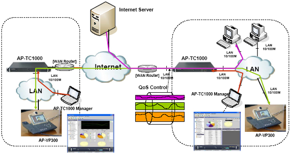 AP-TC1000 Traffic Controller ´Â ·ÎÄà LAN ¸Á¿¡¼ QoS Á¤Ã¥°ü¸®, Æ®·¡ÇÈ ¸ð´ÏÅ͸µ, Æ®·¡ÇÈ ºÐ¼®¸¦ Áö¿øÇÏ´Â Â÷¼¼´ë °í¼º´É ³×Æ®¿öÅ© Æ®·¡ÇÈ Á¦¾î Àåºñ·Î, 2Æ÷Æ®ÀÇ 10/100Mbps ÀÌ´õ³Ý ÀÎÅÍÆäÀ̽º¿Í ´Ù¾çÇÑ ³×Æ®¿öÅ© ¸ðµâÀ» ¼±Åá¤ÀåÂøÇÒ ¼ö ÀÖ´Â 1°³ÀÇ ¸ÖƼ ¼ºñ½º ½½·ÔÀ¸·Î ±¸¼ºµÅ ÀÖ½À´Ï´Ù. µ¶¸³ÀûÀ¸·Î ¼³Ä¡µÇ¾î »ç¿ëÀÚ ¸ÁÀÇ QoS Á¤Ã¥ °ü¸®¸¦ Á¦°ø ÇÒ ¼ö ÀÖÀ¸¸ç, ¾ÖµåÆÅÀÇ ´Ù¾çÇÑ VoIP, Video Á¦Ç° ±º°ú ÇÔ²² ³×Æ®¿öÅ©¿¡ ¼³Ä¡µÇ¾î ¾ÈÁ¤ÀûÀÎ QoS ¼ºñ½º¸¦ Á¦°øÇÒ ¼ö ÀÖ½À´Ï´Ù. IP ³×Æ®¿öÅ© ±â¹ÝÀÇ VoIP, ºñµð¿À ¼ºñ½º¿¡ ´ëÇÑ ¼ö¿ä´Â °¡ÀÔÀÚ ¸ÁÀÇ ±¤´ë¿ª ³×Æ®¿öÅ© ÀÎÇÁ¶óÀÇ ±¸Ãà°ú ÇÔ²² Æø¹ßÀûÀ¸·Î ¿Ã¶ó°¡°í ÀÖ½À´Ï´Ù. IP ±â¹ÝÀÇ ¿µ»ó¼ºñ½ºµµ Àú´ë¿ªÆøÀ» »ç¿ëÇÏ´Â PC ±â¹ÝÀÇ ¼ÒÇÁÆ®¿þ¾î ¿µ»ó ¼Ö·ç¼ÇÀÌ ¾Æ´Ñ ºê·Îµå¹êµå ´ë¿ªÆøÀ» »ç¿ëÇÏ´Â Çϵå¿þ¾î ±â¹ÝÀÇ È»óȸÀÇ Àåºñ, ºñµð¿À Æù, IP ¿µ»ó¹æ¼ÛÀåºñ, ³×Æ®¿öÅ© DVR Àåºñ µî °íǰÁú, °íÈÁú ¿µ»ó½Ã½ºÅÛÀÇ µµÀÔÀÌ È°¹ßÇØ Áö°í ÀÖ½À´Ï´Ù. ¾ÖµåÆÅÀÇ AP-TC1000Àº µÎ°³ÀÇ ÆÐ½ºÆ® ÀÌ´õ³Ý Æ÷Æ®¸¦ »ç¿ëÇÑ LAN-to-LAN QoS ¶ó¿ìÆÃÀ» ±âº»ÀûÀ¸·Î Á¦°øÇϰí, ¸ðµâ·¯ ŸÀÔÀÇ WAN ÀÎÅÍÆäÀ̽º QoS ¶ó¿ìÅÍ ±â´ÉÀ» ¿É¼Ç ÇüÅ·ΠÁ¦°øÇÕ´Ï´Ù. AP-TC1000 ¿¡¼ Á¦°øµÇ´Â WAN ÀÎÅÍÆäÀ̽º ¸ðµâÀº V.35(1Port, 2Port, 6Port) ÀÎÅÍÆäÀ̽º, ATM (E1/T1, DS3, OC3)ÀÎÅÍÆäÀ̽º, POS(DS3) ÀÔ´Ï´Ù. IPv4/IPv6 Dual Stack À» Áö¿øÇϸç, Static, RIP, RIPng, OSPFv2/v3, BGP4 °°Àº ¶ó¿ìÆÃ ÇÁ·ÎÅäÄÝÀ» Áö¿øÇÕ´Ï´Ù. Æß¿þ¾î ¾÷±×·¹ÀÌµå °¡´ÉÇÑ ±¸Á¶ AP-TC1000 Æ®·¡ÇÈ Á¦¾î ½Ã½ºÅÛÀº AP-TC1000 ÀÓº£µðµå ½Ã½ºÅÛ°ú PC À©µµ¿ì ±â¹ÝÀÇ Traffic Controller Manager ÇÁ·Î±×·¥À¸·Î ±¸¼ºµË´Ï´Ù. AP-TC1000 Æ®·¡ÇÈ Á¦¾î ½Ã½ºÅÛÀº ÇÁ·Î±×·¡¸Óºí ±¸Á¶À̱⠶§¹®¿¡ Áö¼ÓÀûÀÎ ±â´É°³¼±À̳ª º¯°æ, Ãß°¡°¡ °¡´ÉÇÕ´Ï´Ù. ±â´ÉÃß°¡, º¯°æÀÌ ÀÖÀ» ¶§¸¶´Ù Á÷Á¢ ¾ÖµåÆÅ ȨÆäÀÌÁö¿¡¼ ´Ù¿î¹Þ°Å³ª ÀÚµ¿ ¾÷±×·¹ÀÌµå ¿É¼ÇÀ» ÁöÁ¤Çصθé, º°µµ ¼ö°í¸¦ ÇÒ ÇÊ¿ä ¾øÀÌ ÃÖ½ÅÀÇ ±â´ÉÀ» ÀÌ¿ëÇÒ ¼ö ÀÖ½À´Ï´Ù. ´Ù¾çÇÑ Å¥À× ¹× Æ®·¡ÇÈ Á¦¾î ¾Ë°í¸®Áò AP-TC1000 Æ®·¡ÇÈ Á¦¾î ½Ã½ºÅÛÀº CBQ (Class-based Queuing), FIFOQ (FIFOQ (First-In First-Out Queue), PRIQ (Priority Queuing), HFSC (Hierarchical Fair Service Curve), RED (Random Early Detection), RIO (RED with In/Out), BLUE, JoBS, WFQ (Weighted Fair Queuing) °°Àº ´Ù¾çÇÑ Å¥À× ¾Ë°í¸®ÁòÀ» Áö¿øÇÕ´Ï´Ù. ¶ÇÇÑ AP-TC1000 Æ®·¡ÇÈ Á¦¾î ½Ã½ºÅÛÀº ¼¼°¡Áö QoS ±â¹ÝÀÇ ¶ó¿ìÆÃ ¾Ë°í¸®ÁòÀ» Á¦°øÇÕ´Ï´Ù. Source Address, DSCP, Service Class º° QoS ¶ó¿ìÆÃ ±â´ÉÀ» ¼öÇàÇÒ ¼ö ÀÖ½À´Ï´Ù. ¸ðµç ±â´ÉÀ» ¿ø°Ý °ü¸® AP-TC1000Àº ÀåºñÀÇ ¾ÈÁ¤¼º È®º¸ Â÷¿ø¿¡¼ TelnetÀ̳ª Ftp µîÀ» ÅëÇØ ¿ø°Ý¿¡¼ ÀåºñÀÇ »óÅ Á¡°Ë°ú ±â´É¼³Á¤ ¹× ¼ÒÇÁÆ®¿þ¾î ¾÷±×·¹À̵尡 °¡´ÉÇÕ´Ï´Ù. ¶ÇÇÑ ¿©·¯ ÁöÁ¡¿¡¼ ¿©·¯ ´ëÀÇ AP-TC1000À» ¿î¿µÁßÀΠȯ°æÀ» À§ÇØ º°µµ GUI ±â¹ÝÀÇ °ü¸® ½Ã½ºÅÛÀ» Á¦°øÇÕ´Ï´Ù. ÀÀ¿ëºÐ¾ß ¾ÖµåÆÅÀÇ Æ®·¡ÇÈ Á¦¾î ½Ã½ºÅÛÀº IP ±â¹ÝÀÇ ÀÀ¿ë¼ºñ½º°¡ »ç¿ëµÇ´Â ¸ðµç ³×Æ®¿öÅ©¿¡¼ »ç¿ëµÉ ¼ö ÀÖ½À´Ï´Ù. ƯÈ÷ VoIP, Video over IP °°Àº ½Ç½Ã°£ Æ®·¡ÇÈÀ» »ç¿ëÇÏ´Â °÷À̳ª °ÔÀÓ¹æ °°Àº °÷¿¡¼ ³×Æ®¿öÅ© °ÔÀÓ Æ®·¡ÇÈ¿¡ ´ëÇÑ ¿ì¼± ´ë¿ªÆø ÇÒ´çÀÌ ÇÊ¿äÇÑ °æ¿ìµî ´Ù¾çÇÑ ³×Æ®¿öÅ©¿¡¼ ¹Ýµå½Ã ÇÊ¿äÇÕ´Ï´Ù. ƯÈ÷ WAN ¿¢¼¼½º ´ë¿ªÆøÀÌ ÀÛÀº °æ¿ì¿¡ È¿À²ÀûÀ¸·Î »ç¿ëµÉ ¼ö ÀÖ½À´Ï´Ù.