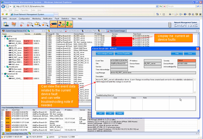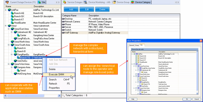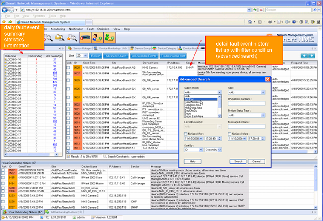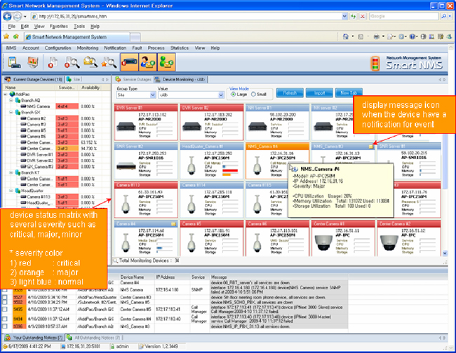 Smart CCTV NMS (Network Management System)´Â ¾ÖµåÆÅÅ×Å©³î·¯ÁöÀÇ Â÷¼¼´ë ³×Æ®¿öÅ© DVR ¼Ö·ç¼Ç¿¡¼ IP Ä«¸Þ¶ó, ³×Æ®¿öÅ© Ä«¸Þ¶ó, ºñµð¿À ÀÎÄÚ´õ, ³×Æ®¿öÅ© DVR ¼¹ö, ½ºÅÄµå ¾ó·Ð ³×Æ®¿öÅ© DVR ¼¹ö, ºñµð¿À ¶ó¿ìÅÍ µîÀ» µîÀ» ü°èÀûÀ¸·Î °ü¸®Çϱ⠼ÒÇÁÆ®¿þ¾î ÀÔ´Ï´Ù. Smart CCTV NMS Àº Linux ±â¹ÝÀÇ ¼¹ö¿Í À¥ ±â¹ÝÀÇ Å¬¶óÀÌ¾ðÆ® ¼ÒÇÁÆ®¿þ¾î·Î ±¸¼ºµÇ¾î ÀÖ½À´Ï´Ù. Network Resource Management, Device Fault Management, Device Fault History Management, Device Status Management, Fault Notification Management, Device Fault Statistics, Device Model & Service Management ±â´ÉÀ» Áö¿øÇÏ´Â ¼ÒÇÁÆ®¿þ¾î ÀÔ´Ï´Ù. ¼¹ö-Ŭ¶óÀÌ¾ðÆ® Smart CCTV NMS ¾ÆÅ°ÅØÃÄ Smart CCTV NMSÀº Linux ±â¹ÝÀÇ Smart CCTV NMS¼¹ö¿Í À¥ ±â¹ÝÀÇ Smart CCTV NMSŬ¶óÀÌ¾ðÆ® ¼ÒÇÁÆ®¿þ¾î·Î ±¸¼ºµÇ¾î ÀÖ½À´Ï´Ù. Smart NMS ¼¹ö´Â RHEL(Redhat Enterprise Linux) 5.0 or higher ¹öÀüÀÇ Linux OS ¸¦ »ç¿ëÇϸç, ¾îÇø®ÄÉÀÌ¼Ç ¼ÒÇÁÆ®¿þ¾î·Î JRE(Java Runtime Environment) 1.5.1 or higher ¿Í PostgreSQL 8.1.11 µ¥ÀÌÅͺ£À̽º¸¦ »ç¿ëÇÕ´Ï´Ù. Smart CCTV NMS Ŭ¶óÀÌ¾ðÆ®´Â Window XP, Vista, Window Server ¿¡¼ ¿î¿µµÇ¸ç, Microsoft Internet Explorer 6.0 or higher ¹öÀüÀÇ Web ºê¶ó¿ìÀú¸¦ »ç¿ëÇÏ¿© SmartNMS ¼¹ö¿¡ Á¢¼ÓÇÏ¿© NMS ¼ºñ½º ±â´ÉÀ» Á¦°øÇÕ´Ï´Ù. Web Á¢¼Ó½Ã¿¡ ÀÚµ¿À¸·Î ¼ÒÇÁÆ®¿þ¾î ¹öÀü µîÀ» üũÇÏ¿© S/W¾÷±×·¹À̵å ÇÒ ¼ö ÀÖµµ·Ï ¼³°èÇÏ¿´À¸¸ç, UI µðÀÚÀÎÀº »ç¿ëÀÚ°¡ ¼Õ½±°Ô »ç¿ëÇÒ ¼ö ÀÖµµ·Ï Æí¸®ÇÏ°Ô µðÀÚÀÎÇÏ¿´½À´Ï´Ù.
