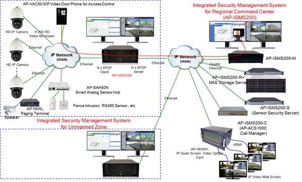 ¾ÖµåÆÅ ÅëÇÕº¸¾È°üÁ¦½Ã½ºÅÛ¼Ö·ç¼ÇÀº Á¤ºÎ°ø°ø±â°£, ±º»ç½Ã¼³µî ±¹°¡Áß¿ä½Ã¼³À» º¸È£, ħÀÔ Å½Áö ¹æ¾îÇϱâ À§ÇÑ Â÷¼¼´ë ÅëÇÕ ½ÃÅ¥¸®Æ¼ ¼Ö·ç¼ÇÀÔ´Ï´Ù. Onvif Ç¥ÁØ ÇÁ·ÎÅäÄÝ ±â¹ÝÀÇ CCTV VMS ¼ÒÇÁÆ®¿þ¾î, ¿ïŸ¸® ħÀÔ Å½Áö¼¾¼, Àû¿Ü¼± ¼¾¼µî À¯¹«¼± ħÀÔŽÁö¼¾¼ °ü¸® ¼ÒÇÁÆ®¿þ¾î, ´Ùä³Î ¹æ¼Û ¶Ç´Â ÀÏ´ëÀÏ ¹æ¼Û¿ëµî IP À½¼º°æ°í ¹æ¼Û¼ÒÇÁÆ®¿þ¾î, SIP ºñµð¿À µµ¾îÆù ¹æ½ÄÀÇ ÃâÀÔ¹®Á¦¾î °ü¸® ¼ÒÇÁÆ®¿þ¾î, RTSP ½ºÆ®¸®¹Ö ºÐ¹è ¼¹ö¼ÒÇÁÆ®¿þ¾î, SIP ÄݸŴÏÁ®½Ã½ºÅÛ, SIPº¸¾È ÅëÈ¿µ»ó ¹× À½¼ºÀüȱâ, ¹«Àü±â LMR °ÔÀÌÆ®¿þÀÌ ¹× RoIP (Radio over IP) µð½ºÆÐÃÄ ¼ÒÇÁÆ®¿þ¾îµîÀ¸·Î ÅëÇÕÀ¸·Î ±¸¼ºµÇ¾î ÀÖ½À´Ï´Ù. Onvif Ç¥ÁØ ÇÁ·ÎÅäÄݱâ¹ÝÀÇ CCTV ³ìÈ, Àç»ý, ½Ç½Ã°£ ¸ð´ÏÅ͸µÀ» ´ã´çÇÏ´Â³×Æ®¿öÅ© DVR ¼ÒÇÁÆ®¿þ¾î ºí·ÏÀº Full HD/HD/SD±Þ Â÷¼¼´ë °í¼º´É µðÁöÅкñµð¿À ·¹ÄÚµù ¹× ÇÁ·Î¼¼½ÌÀ» ¼öÇàÇϸç Onvif IP Ä«¸Þ¶ó¿Í ¿¬µ¿ÇÏ¿© HD ¿µ»óÀ» ¸ð´ÏÅ͸µÇÒ ¼ö ÀÖ´Â H.264±â¹ÝÀÇ NVR ½Ã½ºÅÛÀÔ´Ï´Ù. RTSP ¼¹ö±â´ÉÀ» žÀçÇÏ¿© ³×Æ®¿öÅ©±â¹ÝÀÇ ´Ù¾çÇÑ ÀÀ¿ë¼ºñ½º°¡ °¡´ÉÇϵµ·Ï ¼³°èµÇ¾ú½À´Ï´Ù.¾ÖµåÆÅ ³×Æ®¿öÅ© DVRÀº H.264 BP/MP/HP(High Profile) ¸ðµÎ Áö¿ø°¡´ÉÇÕ´Ï´Ù. ¶ÇÇÑ ±âÁ¸ MPEG4 ±â¹ÝÀÇ IP Ä«¸Þ¶ó¸¦ ¼ö¿ëÇÒ ¼ö ÀÖµµ·Ï MPEG4 ºñµð¿À ÄÚµ¦µµ Áö¿øÇÒ ¼ö ÀÖµµ·Ï ¼³°èµÇ¾ú½À´Ï´Ù. ÇÁ·Î±×·¡¸Óºí±¸Á¶À̱⠶§¹®¿¡ Áö¼ÓÀûÀÎ ±â´É°³¼±À̳ª º¯°æ, Ãß°¡°¡ °¡´ÉÇÕ´Ï´Ù. ÅëÇÕMAP(Áöµµ) ±â´Éµµ Áö¿øÇϵµ·Ï ¼³°èµÇ¾î, Áöµµ»ó¿¡ IP Ä«¸Þ¶ó, ¼¾¼, ¾Ë¶÷, ¹æ¼ÛÅÍ¹Ì³Îµî ´Ù¾çÇÑ IP ±â¹ÝÀÇ ´Ü¸»±â¸¦ ¹èÄ¡ÇÏ¿© ÁïÈïÀûÀ¸·Î ½ÃÅ¥¸®Æ¼ »óȲÀ» ÇÑ´«¿¡ ÆÄ¾ÇÇϵµ·Ï ¼³°èµÇ¾ú½À´Ï´Ù. ħÀÔŽÁö¼¾¼ °ü¸®¼ÒÇÁÆ®¿þ¾î´Â ¸¹Àº¼öÀÇ ¾ÖµåÆÅ AP-SH50(Zigbee, ZWave), AP-SAH50N(Wired Sensor, RS485 µî) °°Àº À¯¹«¼± ½º¸¶Æ®¼¾¼Çãºê¸¦ ¼¾ÅÍ¿¡¼ ÁýÁßÀûÀ¸·Î Á¦¾îÇϱâÀ§ÇÑ ±â¾÷¿ë ¼¾¼ ³×Æ®¿öÅ©ÄÁÆ®·Ñ·¯ÀÔ´Ï´Ù. ½º¸¶Æ®¼¾¼ Çãºê½Ã½ºÅÛ°ú ¾îÇø®ÄɼǼÒÇÁÆ®¿þ¾î°¡ ´ÜÀ§½Ã½ºÅÛÀ» Á¦¾îÇϱâÀ§ÇÏ¿© »ç¿ëµÇ´Â ¹Ý¸é¿¡ ½º¸¶Æ®¼¾¼ ³×Æ®¿öÅ©ÄÁÆ®·Ñ·¯¿Í °ü¸®¼ÒÇÁÆ®¿þ¾î´Â °Ç¹°, ȸ»ç, Ãþµî Á»´õ Å«¹üÀ§¿¡¼ ¿©·¯ °³ÀÇ ½º¸¶Æ®¼¾¼ ÇãºêµéÀ» ±×·ì, ÀüüµîÀ¸·Î Á¤ÀÇÇÏ¿© ¼¾¼³×Æ®¿öÅ©¸¦ Áß¾ÓÁýÁßÀûÀ¸·Î Á¦¾îÇÏ´Â ½Ã½ºÅÛÀÔ´Ï´Ù. À̽ýºÅÛÀº ÅëÇÕº¸¾È°üÁ¦¼¾ÅÍ¿¡ ¼³Ä¡µÇ¾î ÀÎÅÚ¸®ÀüÆ®ÇÑ ½º¸¶Æ®¼¾¼ ³×Æ®¿öÅ©¸¦ ±¸¼ºÇÒ ¼ö ÀÖ½À´Ï´Ù. ¾ÖµåÆÅ Å×Å©³î·¯ÁöÀÇ Â÷¼¼´ë ÅëÇÕ º¸¾È°ü¸®½Ã½ºÅÛ ¼Ö·ç¼Ç¿¡¼ ´Ùä³Î ¹æ¼Û¶Ç´Â ÀÏ´ëÀÏ ¹æ¼Û¿ëµî IP À½¼º°æ°í ¹æ¼Û¼ÒÇÁÆ®¿þ¾î´Â MS-Window ±â¹ÝÀÇ °ü¸® PC¿¡ ¼³Ä¡Å¾ÀçµÇ¾î IP ¹æ¼Û¼¹ö±â´É ¹× ¹æ¼Û°ü¸® ¼ÒÇÁÆ®¿þ¾î±â´ÉÀ» ¼öÇàÇÕ´Ï´Ù. MS Window ±â¹ÝÀÇ PC Ç÷§Æû ȯ°æ¿¡¼ ¼¹ö/Ŭ¶óÀÌ¾ðÆ®±¸Á¶¸¦ ¼³°èµÇ¾úÀ¸¸ç µ¥ÀÌÅͺ£À̽º¿Í ÀÚ¹Ù JAVA JRE 1.5À» »ç¿ëÇÏ¿© ±¸ÇöµÇ¾ú½À´Ï´Ù. Àüü¹æ¼Û ¹× °³º°¹æ¼ÛÀ» À§ÇÑ IP ¹æ¼Û¼¹ö±â´É, »ç¿ëÀÚµî·Ï ¹× Á¢±ÙÁ¦ÇѰü¸®, ¾ÖµåÆÅ À½¼º¹æ¼Û Àåºñ°ü¸®, ¹æ¼Û¼Ò½º, ±×·ì, Áñ°Üã±â°ü¸®, ¿¹¾à¹æ¼Û ¹× ½Ãº¸¹æ¼Û, ¿ø°Ý¹æ¼Û°ü¸®, ¹æ¼ÛÀåºñÁ¡°Ë, À̺¥Æ® ÀÌ·ÂÁ¶È¸±â´ÉµéÀ» Áö¿øÇÏ´Â ¼ÒÇÁÆ®¿þ¾îÀÔ´Ï´Ù. SIP ºñµð¿À µµ¾îÆù¹æ½ÄÀÇ ÃâÀÔ¹®Á¦¾î °ü¸®¼ÒÇÁÆ®¿þ¾î´ÂSIP, RTP Ç¥ÁØÇÁ·ÎÅäÄÝÀ» »ç¿ëÇØ ÀÎÅͳÝÀ» ÀÌ¿ëÇØ °íÈÁú?°íÀ½ÁúÀÇ ºñµð¿ÀÅë½ÅÀÌ °¡´ÉÇÑ MS-Window ±â¹ÝÀÇSIP ºñµð¿À µµ¾îÆù ÃâÀÔ°ü¸® ¼ÒÇÁÆ®¿þ¾îÀÔ´Ï´Ù. ÃÖ½ÅÀÇ ºñµð¿ÀÄÚµ¦°ú Æí¸®ÇÑ »ç¿ëÀÚÀÎÅÍÆäÀ̽º(GUI: Graphic User Interface) ÅëÇØ ÀÎÅͳݱâ¹ÝÀÇ À½¼ºÅëÈ, ¿µ»óȸÀÇ, ¿µ»óÀüȼºñ½ºµîÀ» ÃÖÀûÀ¸·Î Áö¿øÇÕ´Ï´Ù. SIP, H. 323* ¸ÖƼÇà VoIP ½Ã±×³Î¸µ ÇÁ·ÎÅäÄÝÀ» ºñ·ÔÇØ, H.263, MPEG-4, H.264µî ´Ù¾çÇÑ ºñµð¿À/À½¼ºÄÚµ¦±â´É°ú ¼ºñ½º¸¦ Á¦°øÇÕ´Ï´Ù. ¾ÖµåÆÅ RTSP ½ºÆ®¸®¹Ö ºÐ¹è¼¹ö ¼ÒÇÁÆ®¿þ¾îºí·ÏÀº RTSP ÇÁ·ÎÅäÄݱâ¹ÝÀ¸·Îºñµð¿À ÀÎÄÚ´õ¿Í ºñµð¿À µðÄÚ´õ»çÀÌ¿¡ À§Ä¡ÇÏ¿© ºñµð¿À ÀÎÄÚµùºñÆ®½ºÆ®¸²À» N:MÀ¸·Î ¶ó¿ìÆÃÇÏ´Â ±â´ÉÀ» ¼öÇàÇÕ´Ï´Ù. HD ºñµð¿ÀÀÎÄÚ´õ(RTSP Server) ¿¡¼¹ß»ýµÇ´Â ºñµð¿À ºñÆ®½ºÆ®¸²À» ¼ö½ÅÇÏ´Â ÀԷ´ܿ¡¼´Â RTSP Client ±â´ÉÀ»¼öÇàÇϸç Ãâ·Â´Ü¿¡¼´Â RTSP Server ±â´ÉÀ» ¼öÇàÇÏ¿© ºñµð¿ÀµðÄÚ´õ (RTSP Client) ¿¡ On-Demand ·Î ºñµð¿À ºñÆ®½ºÆ®¸²À» Àü¼ÛÇÒ ¼ö ÀÖµµ·Ï ¼³°èµÇ¾ú½À´Ï´Ù. ÀԷ´ܿ¡¼ÀÇ Transport Layer ÇÁ·ÎÅäÄÝÀº ¾ÈÁ¤µÈ ÆÐŶ¼ö½ÅÀ» À§Çؼ´Â Mandatory ·Î TCP ÇÁ·ÎÅäÄÝÀ» »ç¿ëÇϰí, RTSP Server Ãâ·Â´Ü¿¡¼´Â ºñµ