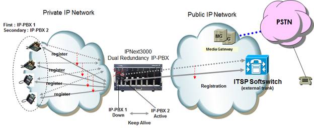 ¾ÖµåÆÅ ÀÌÁßÈ IP-PBX ¼Ö·ç¼ÇÀº ¿Ã IP ȯ°æ, ¸ð¹ÙÀÏ ÀÎÅÍÆäÀ̽º ȯ°æ (GSM, CDMA, 3G WCDMA, etc), PSTN ¾Æ³¯·Î±× ¹× µðÁöÅÐ ÀÎÅÍÆäÀ̽º ȯ°æ¿¡¼ »ç¿ëÇϱâ À§ÇÑ ½Ã½ºÅÛ ÀÌÁßÈ ±â´ÉÀ» žÀçÇÏ¿© Fault Tolerant ÇÑ »õ·Î¿î IP ¸ÖƼ¹Ìµð¾î ÅÚ·¹Æ÷´Ï ¼Ö·ç¼ÇÀÔ´Ï´Ù. ÀÌÁßÈ IP-PBX Á¦Ç°±º ¾Æ·¡ ±×¸²°ú °°ÀÌ ¿ø ½Ã½ºÅÛ µà¾ó IP-PBX ½Ã½ºÅÛ Çϵå¿þ¾î ±¸¼ºÀ¸·Î µÇ¾î ÀÖ½À´Ï´Ù.