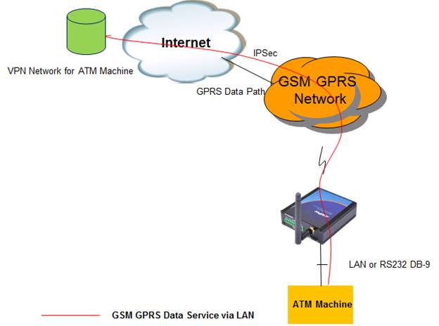 GSM GPRS data service via LAN Port or RS232C Serial Port