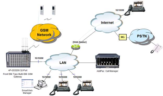AddPac technology is not just a vendor of GSM Gateway Box for the customer satisfaction, but it provides various products for appropriate network environment for VoIP, Media Gateway, audio/video terminals, audio/video MCU, IP audio/video broadcast, VoD solutions, network DVR solution, audio/video recording solutions, and traffic controller QoS device solutions. In the future, All IP based multimedia telephony environment, various audio/video resources should be shared on an IP Network; thus, the integration of solutions for each area and entire solutions are considered as top priority. AddPac IP telephony solution is designed to consider the integrated multimedia solution so that it can satisfy the various needs of customer.