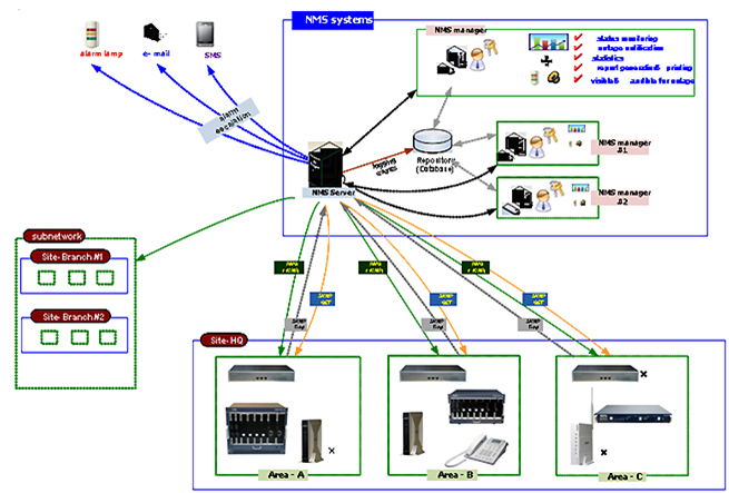 Smart NMS (Network Management System)´Â ¾ÖµåÆÅÅ×Å©³î·¯ÁöÀÇ Â÷¼¼´ë ¸ÖƼ¹Ìµð¾î ÅÚ·¹Æ÷´Ï ¼Ö·ç¼Ç¿¡¼ IP-PBX (SIP ¼¹ö ±â´É Æ÷ÇÔ), UMS(Unified Messaging Server)¼¹ö, User Presence ¼¹ö, RBT(RingBack, Coloring)¼¹ö, IVR ¼¹ö, RTP Proxy ¼¹ö, Audio/Video MCU, Media Gateways, IP Phones, Video Phones, WiFi Phone µîÀ» ü°èÀûÀ¸·Î °ü¸®Çϱ⠼ÒÇÁÆ®¿þ¾î ÀÔ´Ï´Ù. Smart NMS Àº Linux ±â¹ÝÀÇ ¼¹ö¿Í À¥ ±â¹ÝÀÇ Å¬¶óÀÌ¾ðÆ® ¼ÒÇÁÆ®¿þ¾î·Î ±¸¼ºµÇ¾î ÀÖ½À´Ï´Ù. Network Resource Management, Device Fault Management, Device Fault History Management, Device Status Management, Fault Notification Management, Device Fault Statistics, Device Model & Service Management ±â´ÉÀ» Áö¿øÇÏ´Â ¼ÒÇÁÆ®¿þ¾î ÀÔ´Ï´Ù. ¼¹ö-Ŭ¶óÀÌ¾ðÆ® Smart NMS ¾ÆÅ°ÅØÃÄ Smart NMSÀº Linux ±â¹ÝÀÇ SmartNMS¼¹ö¿Í À¥ ±â¹ÝÀÇ Smart NMSŬ¶óÀÌ¾ðÆ® ¼ÒÇÁÆ®¿þ¾î·Î ±¸¼ºµÇ¾î ÀÖ½À´Ï´Ù. Smart NMS ¼¹ö´Â RHEL(Redhat Enterprise Linux) 5.0 or higher ¹öÀüÀÇ Linux OS ¸¦ »ç¿ëÇϸç, ¾îÇø®ÄÉÀÌ¼Ç ¼ÒÇÁÆ®¿þ¾î·Î JRE(Java Runtime Environment) 1.5.1 or higher ¿Í PostgreSQL 8.1.11 µ¥ÀÌÅͺ£À̽º¸¦ »ç¿ëÇÕ´Ï´Ù. Smart NMS Ŭ¶óÀÌ¾ðÆ®´Â Window XP, Vista, Window Server ¿¡¼ ¿î¿µµÇ¸ç, Microsoft Internet Explorer 6.0 or higher ¹öÀüÀÇ Web ºê¶ó¿ìÀú¸¦ »ç¿ëÇÏ¿© SmartNMS ¼¹ö¿¡ Á¢¼ÓÇÏ¿© NMS ¼ºñ½º ±â´ÉÀ» Á¦°øÇÕ´Ï´Ù. Web Á¢¼Ó½Ã¿¡ ÀÚµ¿À¸·Î ¼ÒÇÁÆ®¿þ¾î ¹öÀü µîÀ» üũÇÏ¿© S/W¾÷±×·¹À̵å ÇÒ ¼ö ÀÖµµ·Ï ¼³°èÇÏ¿´À¸¸ç, UI µðÀÚÀÎÀº »ç¿ëÀÚ°¡ ¼Õ½±°Ô »ç¿ëÇÒ ¼ö ÀÖµµ·Ï Æí¸®ÇÏ°Ô µðÀÚÀÎÇÏ¿´½À´Ï´Ù.