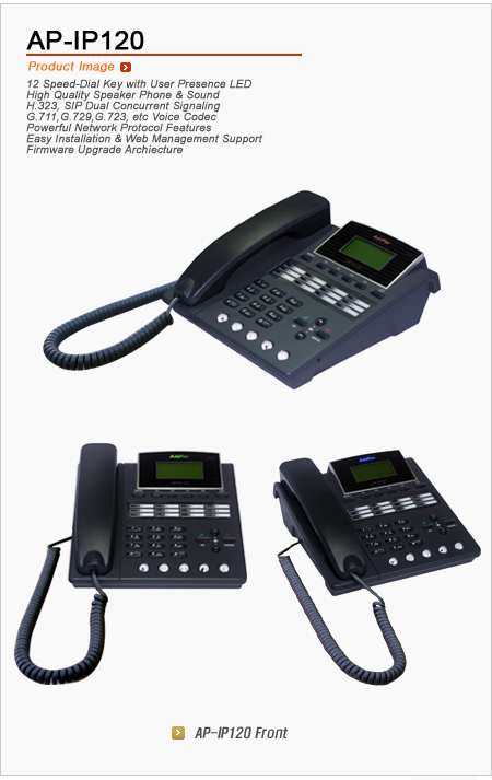¾ÖµåÆÅ AP-IP120 ´ÜÃà´ÙÀ̾ó IPÆùÀº ÀÎÅÍ³Ý À½¼ºÅë½Å°ú ¹æ¼ÛÀ» °áÇÕÇÑ »õ·Î¿î IP ÀüȱâÀÔ´Ï´Ù. SIP, H.323¸ÖƼÇà VoIP ½Ã±×³Î¸µ ÇÁÅäÄÝÀ» ºñ·ÔÇØ G.711, G.726, G729, G723.1À½¼º ÄÚµ¦µî, ½ºÅ×·¹¿À ¿Àµð¿À ÀÎ/¾Æ¿ô ÀÔÃâ·Â ÀÎÅÍÆäÀ̽º, Large Size ±×·¡ÇÈ ¾×Á¤ µð½ºÇ÷¹ÀÌ, ´Ù¾çÇÑ ±â´ÉŰ Áö¿ø, »ç¿ëÀÚ ÇÁ¸®Á¨½º LED Ç¥½Ã±â´ÉÀÌ ÀÖ´Â12°³ ´ÜÃà ´ÙÀ̾óŰ Áö¿ø, µÎ°³ÀÇ °í¼Ó ÀÌ´õ³Ý Æ÷Æ®, PoE(Power over Ethernet) ±â´É, FXO PSTN ÀÎÅÍÆäÀ̽º ±â´É, QoS ±â´É, °øÀÎ IP °øÀ¯±â´É, SMS µî ÷´Ü ±â´É°ú ¼ºñ½º¸¦ Á¦°øÇÕ´Ï´Ù.