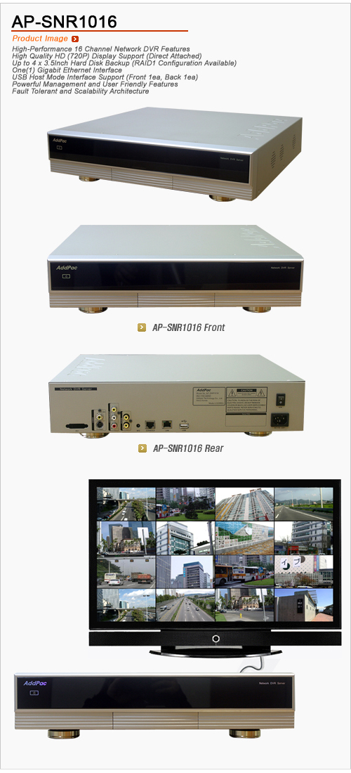 | Title : HD µð½ºÇ÷¹ÀÌ ±â´ÉÀ» Áö¿øÇÏ´Â Standalone ³×Æ®¿öÅ© DVR ¼¹ö AP-SNR1016 Ãâ½Ã |