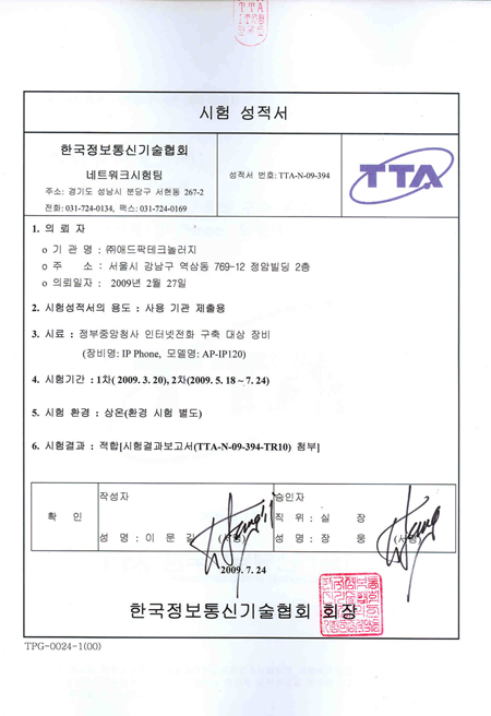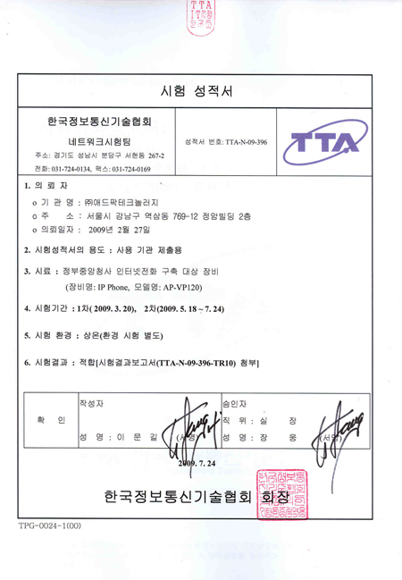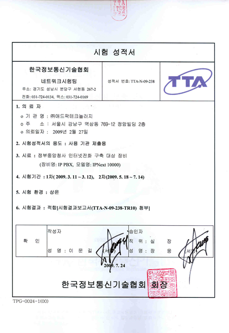 ¾ÖµåÆÅÅ×Å©³î·¯ÁöÀÇ IP-PBX ¹× IPÀÎÅͳÝÀüȱⰡ ÇàÁ¤¾ÈÀüºÎ¿¡¼ ÁøÇà ÁßÀÎ Áß¾ÓÁ¤ºÎû»ç ÀÎÅͳÝÀüÈ(VoIP) ±¸Ãà»ç¾÷ Àû¿ëÀ» À§ÇÑ Çѱ¹Á¤º¸Åë½Å±â¼úÇùȸ(TTA) ¼º´Éº¸¾È½ÃÇèÀ» Åë°úÇß½À´Ï´Ù.