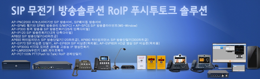 SIP ¹æ¼ÛÀüȱâ´Â AP-IP300, AP-IP120 µîÀÌÀÖÀ¸¸ç, ´ÜÃà´ÙÀ̾ó ±â´ÉÀÌ ±âº»ÀûÀ¸·Î žÀçµÇ¾úÀ¸¸ç, Ãß°¡ÀûÀ¸·Î AP-PT20 (40 Key) ´ÜÃà ´ÙÀ̾ó È®ÀåÆÑÀ» ¼³Ä¡ÇÏ¿© Áõ¼³ ÇÒ ¼ö ÀÖµµ·Ï ¼³°èµÇ¾ú½À´Ï´Ù. AP-IP300 ¾ÖµåÆÅ SIP¹æ¼ÛÀüȱâ´Â ÀÎÅͳÝÀ» ÀÌ¿ëÇØ °íÀ½ÁúÀÇ À½¼ºÅë½ÅÀÌ °¡´ÉÇÑ IP ÀüȱâÀÔ´Ï´Ù. 4.3ÀÎÄ¡ Ä®¶ó TFT LCD, ´Ù¾çÇÑ VoIP À½¼º ÄÚµ¦°ú 25 °³ÀÇ ´ÜÃà´ÙÀ̾ó ¹öư, ´Ù¾çÇÑ I/O ÀÎÅÍÆäÀ̽º¸¦ ÅëÇØ ADSL °°Àº ÀϹÝÀûÀÎ ÀÎÅÍ³Ý È¯°æ ¹× ¾ÖµåÆÅ IP-PBX ¼Ö·ç¼Ç ȯ°æ¿¡¼ À½¼º ÅÚ·¹Æ÷´Ï ¼ºñ½º µîÀ» ÃÖÀûÀ¸·Î Áö¿øÇÕ´Ï´Ù. ¾ÖµåÆÅ AP-IP300 SIP¹æ¼ÛÀüȱâ´Â ÀÎÅÍ³Ý À½¼ºÅë½Å°ú ¹æ¼ÛÀ» °áÇÕÇÑ »õ·Î¿î IP ¹æ¼Û ÀüȱâÀÔ´Ï´Ù. SIP, H.323 ¸ÖƼÇà VoIP ½Ã±×³Î¸µ ÇÁÅäÄÝÀ» ºñ·ÔÇØ G.722(16KHz), G.711, G.726, G729a, G723.1 À½¼º ÄÚµ¦µî, ½ºÅ×·¹¿À ¿Àµð¿À ÀÎ/¾Æ¿ô ÀÔÃâ·Â ÀÎÅÍÆäÀ̽º, Large Size Ä®¶ó LCD µð½ºÇ÷¹ÀÌ, ´Ù¾çÇÑ ±â´ÉŰ Áö¿ø, µÎ°³ÀÇ °í¼Ó ÀÌ´õ³Ý Æ÷Æ®, QoS ±â´É, °øÀÎ IP °øÀ¯±â´É µî ÷´Ü ±â´É°ú ¼ºñ½º¸¦ Á¦°øÇÕ´Ï´Ù.