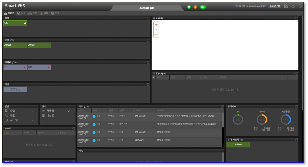 »ç¿ëÀÚÀÇ Àå½Ã°£ ¸ð´ÏÅÍ ³ëÃâ½Ã ½Ã°¢Àû ÇǷεµ¸¦ ÁÙÀ̱â À§ÇØ ´ÙÅ© Ä®¶ó·Î µðÀÚÀÎ µÇ¾ú½À´Ï´Ù. Áö¿ªº°·Î IP Ä«¸Þ¶ó, ¼¾¼, ¹æ¼ÛÅ͹̳Î, ÃâÀÔÅëÁ¦ÀåÄ¡µîÀ» ŸÀÏ ÇüÅ·Π°üÁ¦ ÇÒ ¼ö ÀÖµµ·Ï Á÷°üÀûÀÎ ¼³°è±â¹ýÀ» µµÀÔÇÏ¿© µðÀÚÀÎÇÏ¿´½À´Ï´Ù. ÇöÀå¿¡¼ ÇÊ¿äÇÑ ±â´ÉÀ» ¹Ý¿µÇÑ Á÷°üÀûÀÎ UI ´ÙÀÚÀÎ, Áöµµ ¸Ê±â¹ÝÀÇ IP Ä«¸Þ¶ó, ¹æ¼ÛÅ͹̳Î, ¼¾¼°¨Áö³ëµå Á¦¾î Ç÷¿Æû Áö¿ø, ½Ã½ºÅÛ »óŰü¸® ±â´É, ¾Ë¶÷Ç¥½Ã±â´É, µð¹ÙÀ̽º ¼³Á¤±â´É, ¹«Àα¹»ç °ü¸® ±â´É µîÀ» Á¦°øÇÕ´Ï´Ù.