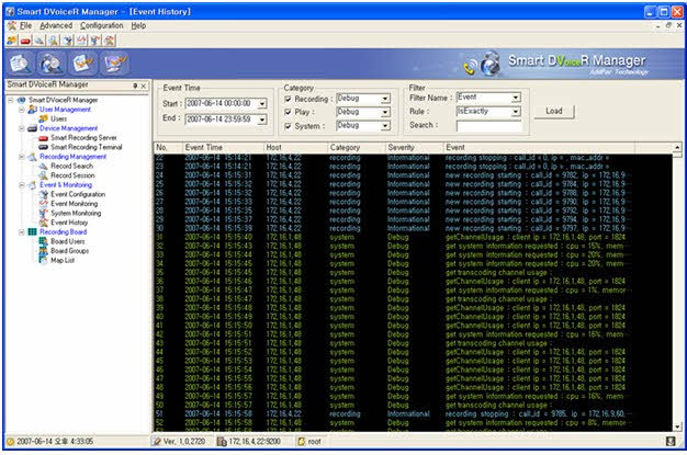 »ç¿ëÀÚ µî·Ï ¹× Á¢±Ù Á¦ÇÑ °ü¸®, À½¼º³ìÃë ÀúÀå¼¹ö »óŰü¸®, ³ìÃëÆÄÀÏ °ü¸®, ³ìÃëÆÄÀÏ ÆÄÇü ºÐ¼®±â´É, Live ÄÝ ¸®½ºÆ® ¹× ¸ð´ÏÅ͸µ ±â´É, À̺¥Æ® °ü¸®±â´É, Recording Board °ü¸®±â´ÉµéÀ» Áö¿øÇÏ´Â ¼ÒÇÁÆ®¿þ¾î ÀÔ´Ï´Ù.