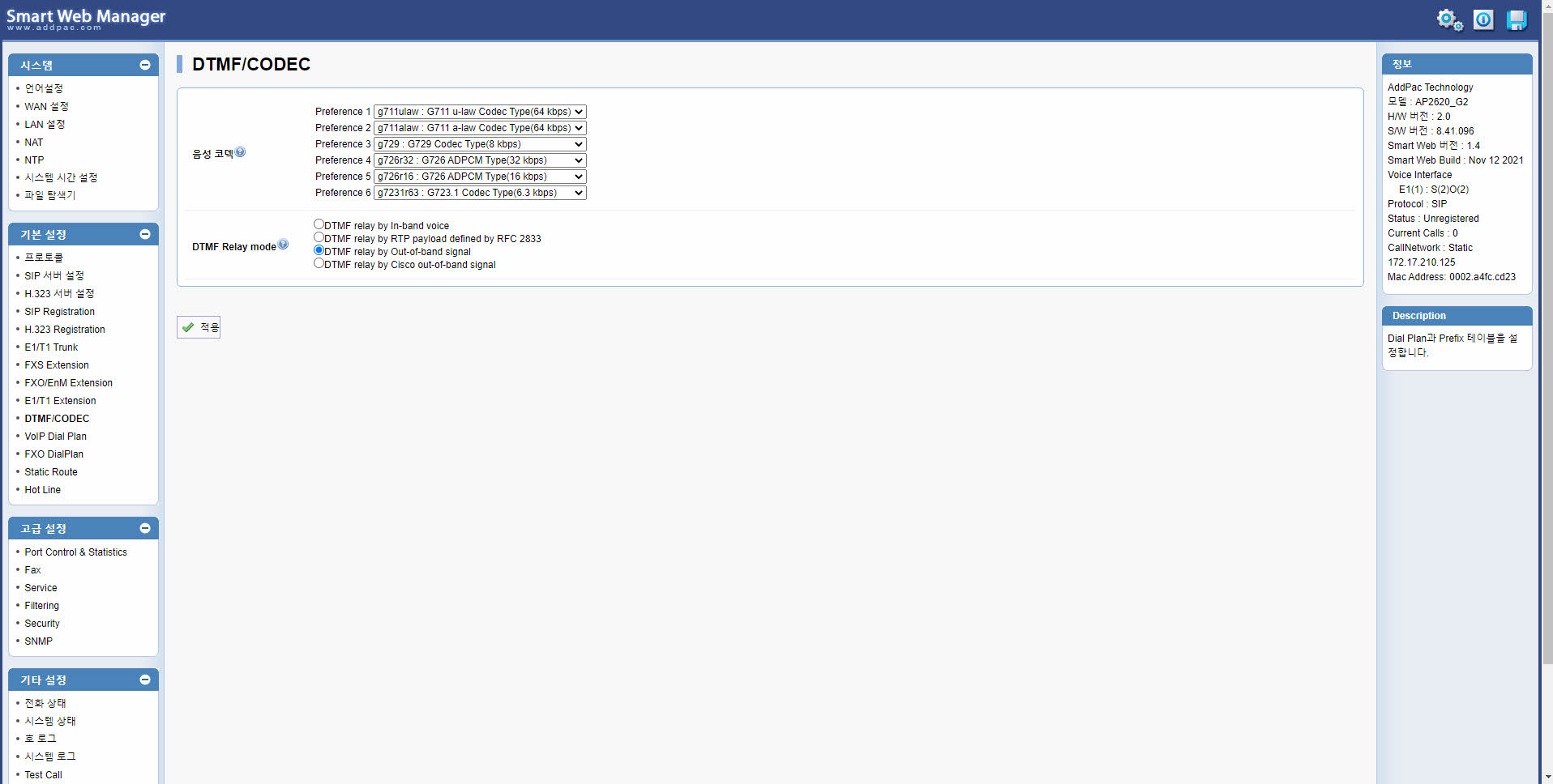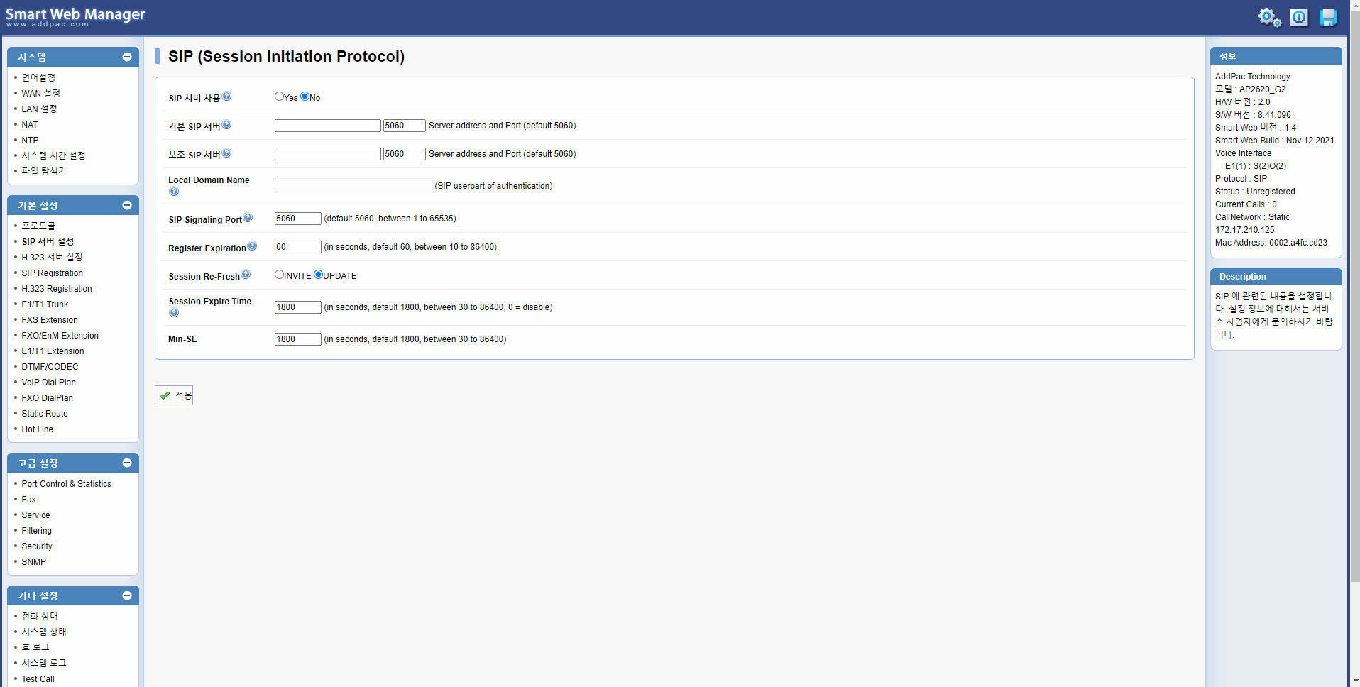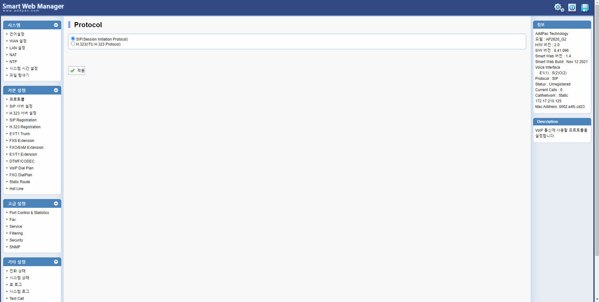 ¾ÖµåÆÅÀÇ ´Ù¾çÇÑ VoIP °ÔÀÌÆ®¿þÀÌ ½Ã¸®Áî´Â Çѱ¹Àº ¹°·Ð, ¼¼°è ½ÃÀå¿¡¼ ±× ¼º´É°ú ¾ÈÁ¤¼ºÀ» ÀÎÁ¤¹Þ°í ÀÖ½À´Ï´Ù. ¾ÖµåÆÅÀÌ ±×µ¿¾È ¿£ÅÍÇÁ¶óÀÌÁî ½ÃÀå°ú Åë½Å »ç¾÷ÀÚ ½ÃÀå¿¡¼ ½×Àº °æÇè°ú ³ëÇϿ찡 ½º¸çµé¾î ÀÖ´Â AP2620GÀº °íǰÁú VoIP ¼ºñ½º¸¦ ¿øÇÏ´Â °í°´ÀÇ ¿ä±¸¸¦ ÃæÁ·Çϱâ À§ÇÑ ´Ù¾çÇÑ ¼ºñ½º Ãø¸é¿¡¼µµ ³ôÀº ¸¸Á·À» µå¸± °ÍÀÔ´Ï´Ù. ¿ì¼± VoIP È£ Á¦¾î ÇÁ·ÎÅäÄÝ Ãø¸é¿¡¼ AP2620GÀº H323, SIP µîÀ» ÄÁÄ¿·±Æ®ÇÏ°Ô Áö¿øÇÕ´Ï´Ù. ¶ÇÇÑ ¾î¶°ÇÑ ³×Æ®¿öÅ© ȯ°æ¿¡¼µµ ¿ì¼öÇÑ ÅëÈǰÁúÀ» Áö¿øÇϱâ À§ÇØ ÀÏ¹Ý QoS(Quality of Service) ¾Ë°í¸®Áò¿¡ ¾ÖµåÆÅ °íÀ¯ÀÇ QoS ¾Ë°í¸®ÁòÀ» ´õÇß½À´Ï´Ù.