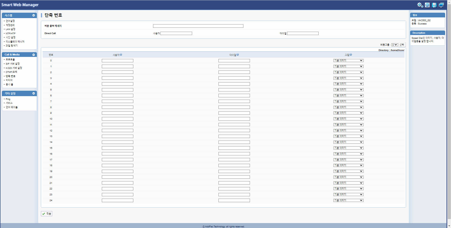 AP-VAC320 IP ºñµð¿À µµ¾îÆùÀº °ü¸®±â´ÉÀ» À§ÇØ ½º¸¶Æ®À¥ ¸Þ´ÏÁ® ±â´ÉÀ» žÀçÇÏ¿´½À´Ï´Ù. »ç¿ëÀÚ PC, ½º¸¶Æ®Æù, Å×ºí¸´ ÀåÄ¡µî¿¡¼ À¥À» ÅëÇÏ¿© ¼Õ½±°Ô IP ºñµð¿À µµ¾îÆùÀÇ Àåºñ ¼³Á¤ ¹× °ü¸® ±â´ÉÀ» ¼öÇàÇÒ ¼ö ÀÖ½À´Ï´Ù.