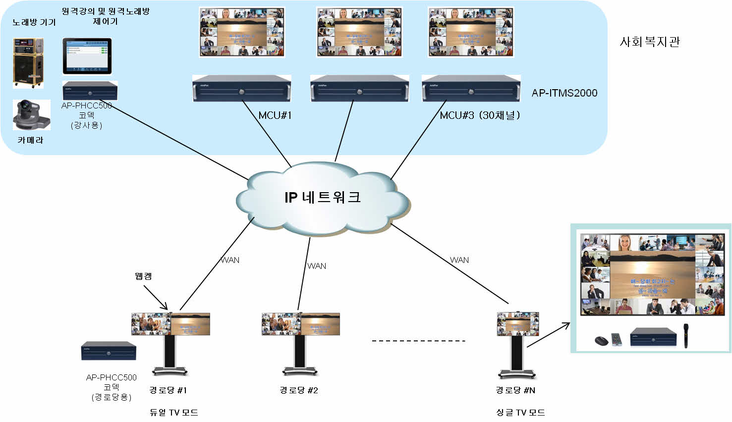 ¿ø°Ý°ÀÇ ¼ºñ½º¿Í´Â ´Ù¸£°Ô ¿ø°Ý ³ë·¡¹æ ¼ºñ½º´Â ´Ù½Ã ¸»ÇÏ¸é ´ÙÀÚ°£ ³×Æ®¿öÅ© ³ë·¡¹æ¼ºñ½º¸¦ Çϱâ À§Çؼ´Â ÀϹÝÀûÀÎ ºñµð¿À ÄÚµ¦±â¼ú»Ó¸¸ ¾Æ´Ï¶ó Ưº°ÇÑ ±â¼úÀÌ µé¾î °¡¾ß ÇÕ´Ï´Ù. »çȸº¹Áö°ü¿¡´Â ÀÖ´Â °»ç°¡ À½¾Ç¹ÝÁÖ¿Í ¹è°æ¿µ»ó¹× ÀÚ¸·À» ¼ÛÃâÇÏ°Ô µÇ¸é, ÀϹÝÀûÀÎ È»óȸÀÇ ±¸Á¶¿¡¼´Â ¿ø°ÝÁö¿¡ ÀÖ´Â °æ·Î´ç¿¡¼´Â À½¾Ç¹ÝÁÖ ¼Ò¸®°¡ ½ºÇÇÄ¿·Î Àç»ýµÇ°í ³ë·¡Çϴ»ç¶÷ÀÇ À½¼º°ú ÇÔ²² ÁöÇ⼺ ¸¶ÀÌÅ©·Î µé¾î°¡°ÔµË´Ï´Ù. ÀÌ·±ÇÑ °æ¿ì ´Ù¸¥ Áö¿ª¿¡ ÀÖ´Â °æ·Î´ç¿¡¼´Â ¾ÆÁÖ Ç°ÁúÀÌ ¶³¾îÁö´Â À½¾Ç ¹ÝÁÖ ¼Ò¸®¸¦ ûÃëÇÒ ¼ö ¹Û¿¡ ¾ø½À´Ï´Ù. ¾ÖµåÆÅÀÇ ¿ø°Ý ³×Æ®¿öÅ© À½¾Ç °æ¿¬ ¼ºñ½º ¼Ö·ç¼Ç¿¡¼´Â ±×µ¿¾È VoIP Åë½Å ±â¼ú°ú ¿µ»óó¸® ¹× ¿µ»óÅë½Å ±â¼ú¿¡¼ÀÇ °æÇèÀ» ¹ÙÅÁÀ¸·Î Àü¼ÛÁö¿¬À» ÃÖ¼ÒÈÇÏ´Â ±â¼ú°ú ¹ÝÁÖ À½¾Ç »ç¿îµå ǰÁúÀ» ³ôÀϼö Àִ Ưº°ÇÑ ±â¼úÀ» Áö¿øÇÕ´Ï´Ù.