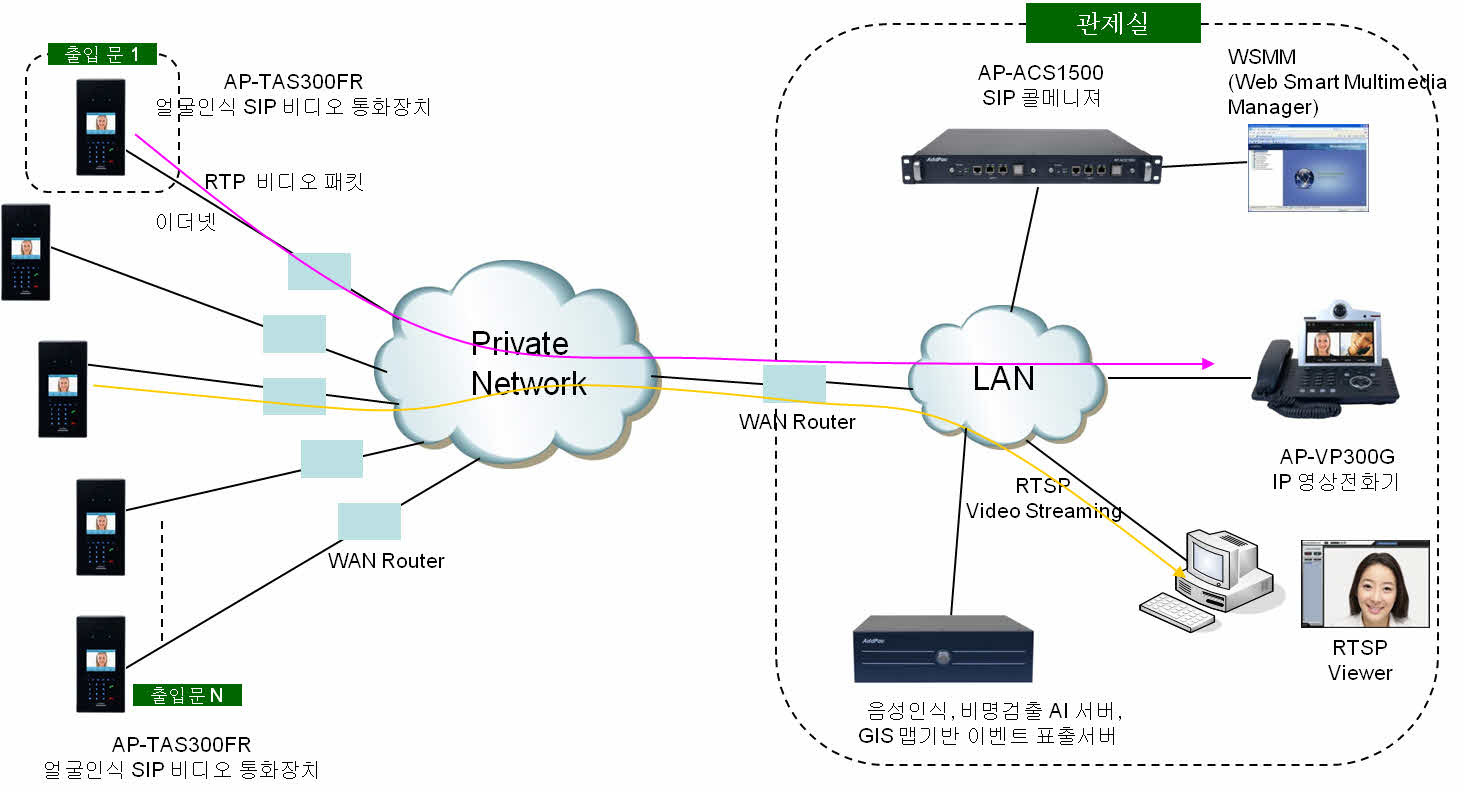 AP-TAS300FR Àº È£ Á¦¾î ÇÁ·ÎÅäÄÝ Ãø¸é¿¡¼ SIP Ç¥ÁØ ÇÁ·ÎÅäÄÝÀ» Áö¿øÇÕ´Ï´Ù. µû¶ó¼ È£ Á¦¾î ÇÁ·ÎÅäÄÝÀÌ ´Ù¸¥ ºñµð¿À Àüȱ⠰°Àº ´Ù¾çÇÑ VoIP ´Ü¸»°úÀÇ ¿¬µ¿¼ºÀÌ ¶Ù¾î³³´Ï´Ù. ¶ÇÇÑ Á¡Â÷ µµÀÔÀÌ Áõ°¡Çϰí ÀÖ´Â IP-PBX, SIP ÇÁ·Ï½Ã ¼¹ö¿ÍÀÇ ¿¬µ¿¼ºÀº ¹°·Ð ±âÁ¸ÀÇ ¾Æ³¯·Î±× ŸÀÔÀÇ PBX ¿ÍÀÇ ¿¬µ¿À» À§Çؼ ¾ÖµåÆÅ µµ¾î Á¦¾î ½Ã½ºÅÛµé°ú ÇÔ²² Á¦°øµÇ¾î IP ȯ°æÀÌ ¾Æ´Ñ »ç³» ¸Á¿¡¼µµ ¿µ»óÀ» º¸¸é¼ ÃâÀÔÅëÁ¦ ÇÒ ¼ö ÀÖ´Â ¼ºñ½º¸¦ Á¦°øÇÒ ¼ö ÀÖ½À´Ï´Ù.