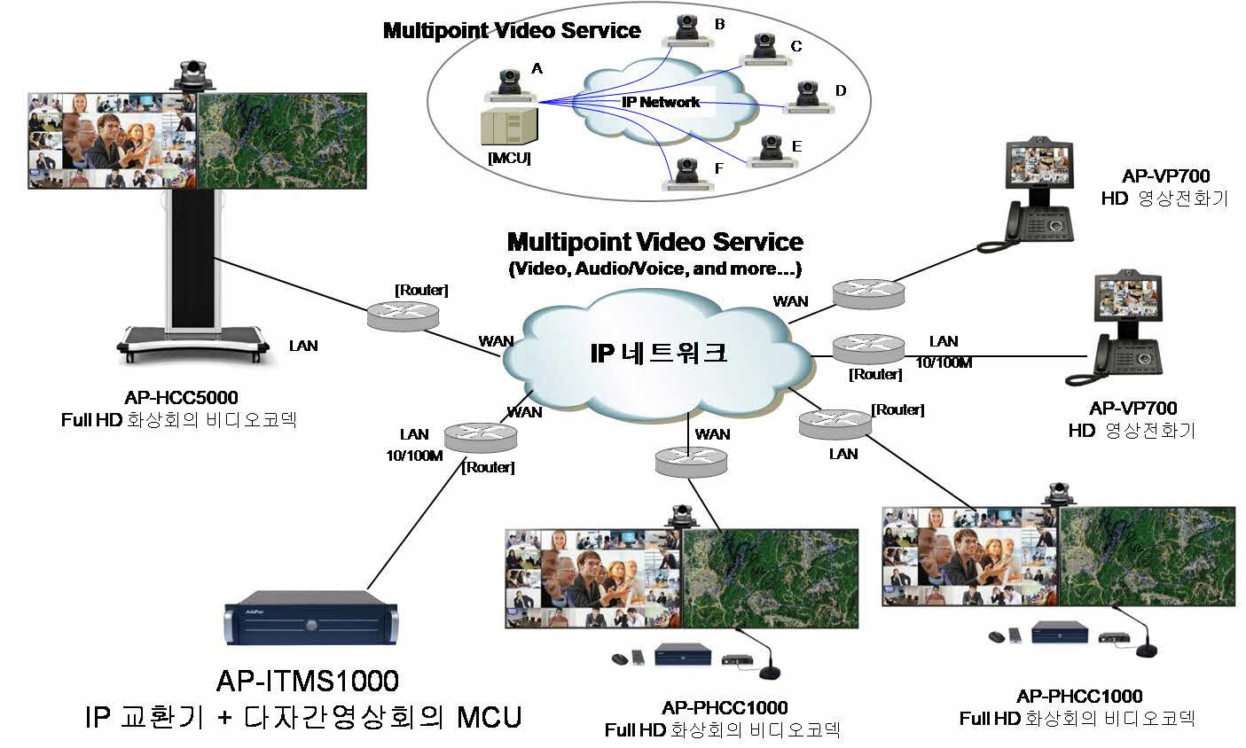 AP-ITMS1000 ÅëÇÕ IP ÅÚ·¹Æ÷´Ï ½Ã½ºÅÛÀº ¾ÖµåÆÅÀÇ ´Ù¾çÇÑ »ç¿ëÀÚ IP Å͹̳ΠÀåºñ (AP-VP300 IP ¿µ»óÀüȱâ, AP-IP300 IPÀüȱâ,etc),) µî°ú ¿¬µ¿ÇÏ¿© ±âÁ¸ÀÇ À½¼º À§ÁÖÀÇ ±â´É ¿Ü¿¡ ¸ÖƼ¹Ìµð¾î IP ÅÚ·¹Æ÷´Ï ¼ºñ½º¸¦ Á¦°øÇÏ´Â ALL IP ȯ°æÀÇ »õ·Î¿î IP ÅÚ·¹Æ÷´Ï ¼Ö·ç¼ÇÀÔ´Ï´Ù. IP ±³È¯±â ±â´É, ´ÙÀÚ°£¿µ»óȸÀÇ ºñµð¿À MCU µî ´Ù¾çÇÑ ¾îÇÃÄÉÀ̼ÇÀ» ÅëÇÕ Áö¿øÇÒ¼ö ÀÖ´Â Â÷¼¼´ë ÅëÇÕ IP ÅÚ·¹Æ÷´Ï Ç÷¿ÆûÀÔ´Ï´Ù.