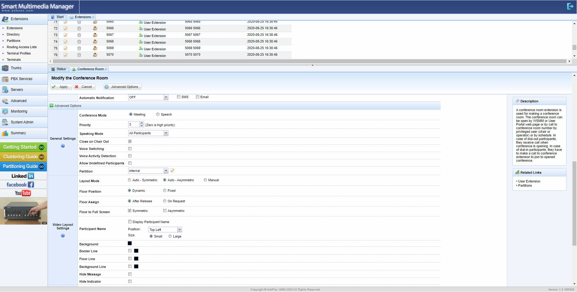 ¾ÖµåÆÅ ºñµð¿À MCU ´Â ´Ù¾çÇÑ È»óȸÀÇ ¼ºñ½º ȯ°æ¿¡ Áö¿øÇϱâ À§Çؼ ºñµð¿À MCU ÀÚü¿¡ žÀçµÈ ¼ø¼ö ½º¸¶Æ® À¥ ¸Þ´ÏÁ®(Smart Web Manager) ¼ÒÇÁÆ®¿þ¾î¸¦ ÅëÇÏ¿© ºñµð¿À ÄÁÆÛ·±½º ·ë(Video Conference Room)À» ¸¸µé°í ºñµð¿ÀÄÚµ¦, À½¼ºÄÚµ¦, ´ë¿ªÆø µî ºñµð¿À ÄÁÆÛ·±½º ·ë¿¡ °ü·ÃµÈ °¢Á¾ ¼³Á¤À» ÇÒ ¼ö ÀÖµµ·Ï Áö¿øÇÕ´Ï´Ù. ¼ø¼ö À¥ºê¶ó¿ìÀú·Î ¼³°èµÇ¾î PC ³ª ³ëÆ®ºÏ, Å×ÀÌºí¸´, ½º¸¶Æ®Æù µî À¥ ºê¶ó¿ìÀú°¡ ¼³Ä¡µÈ ȯ°æµî ´Ù¾çÇÑ È¯°æ¿¡¼ ºñµð¿À MCU ¿î¿µ °ü¸®°¡ °¡´ÉÇÕ´Ï´Ù.