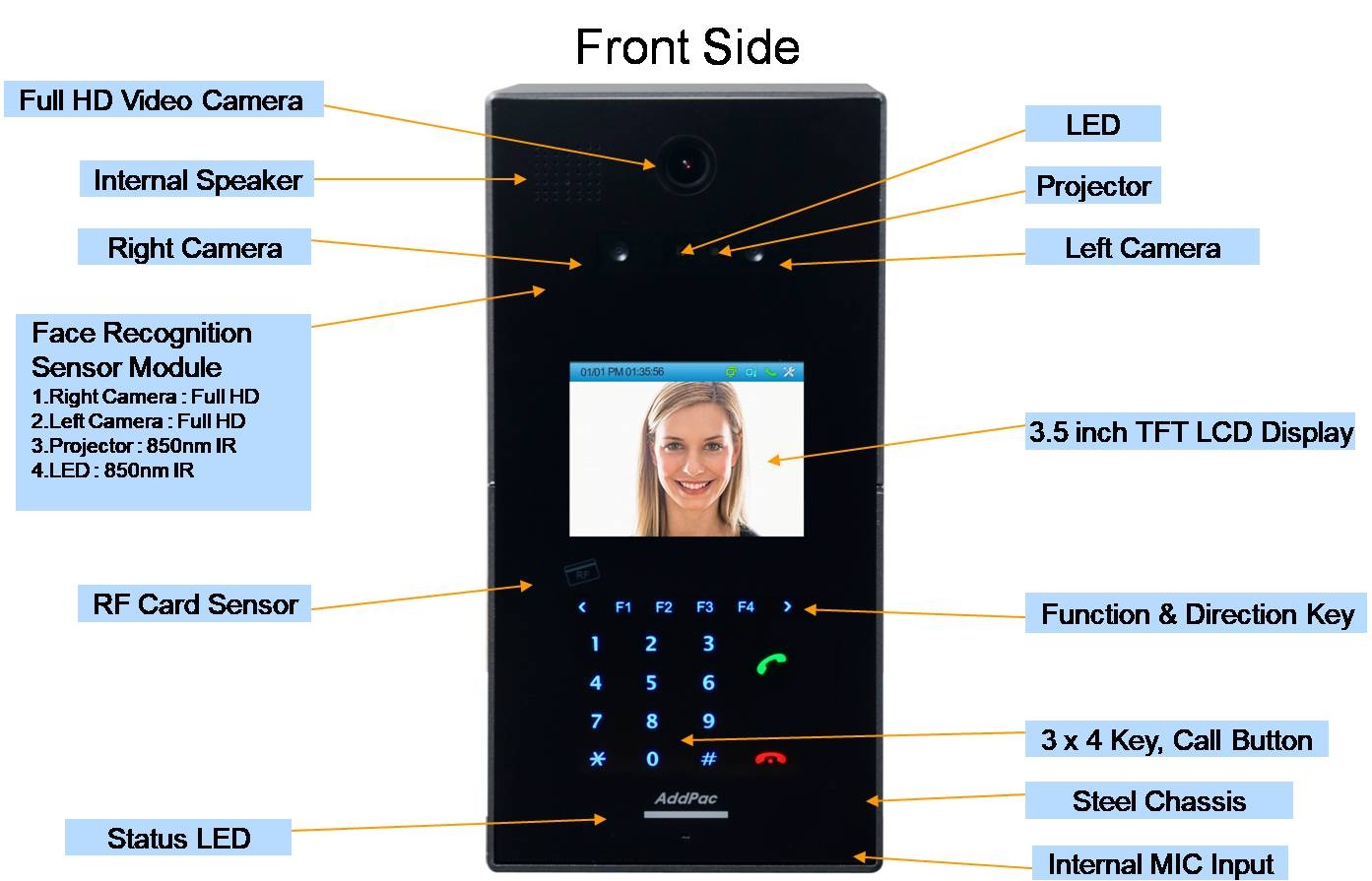 AP-VAC250FR ¾ó±¼ÀÎ½Ä IP ºñµð¿À µµ¾îÆùÀº Çö°ü ¶Ç´Â ÀÔ±¸¿¡ ¼³Ä¡µÇ¾î ÀÎÅͳÝÀ» ÀÌ¿ëÇØ ºñµð¿À ȸéÀ» º¸¸é¼ ÃâÀÔÅëÁ¦ ±â´ÉÀ» ¼öÇàÇÏ´Â IP ºñµð¿À µµ¾îÆùÀÔ´Ï´Ù. SIP Ç¥ÁØ VoIP ½Åȣó¸® ±â´ÉÀ» »ç¿ëÇÏ¿© ¾ÖµåÆÅ IP-PBX, ºñµð¿À Àüȱâ, ¼ÒÇÁÆ®Æù °ú ¿¬µ¿ÇÏ¿© È®À强ÀÌ ¶Ù¾î³³´Ï´Ù. ¶ÇÇÑ °íÇØ»óµµ Ç® HD Ä«¸Þ¶ó¼¾¼¸¦ ÀåÂøÇÏ¿© ´Ù¾çÇÑ ÀÀ¿ë¼ºñ½º¿¡ Àû¿ëÇÒ ¼ö ÀÖµµ·Ï ¼³°èµÇ¾ú½À´Ï´Ù. ÀÌÁ¦ IP ºñµð¿À µµ¾îÆùÀÇ ¼±Åà ±âÁØÀº VoIP Ç¥ÁؽÅÈ£ ü°è ¼ö¿ë°ú Æí¸®¼ºÀÔ´Ï´Ù. AP-ACS1500 µµ¾î ¿¢¼¼½º Á¦¾î ½Ã½ºÅÛ°ú ÇÔ²² ±â¾÷¿ë IP ºñµð¿À ÃâÀÔÅëÁ¦ ¼Ö·ç¼ÇÀ» Á¦°øÇÕ´Ï´Ù. ´Ù¾çÇÑ ÀÀ¿ë¼ºñ½º¸¦ À§Çؼ AP-VAC250FRÀº 3.5ÀÎÄ¡ TFT-LCD ¸¦ žÀçÇÏ¿´½À´Ï´Ù.