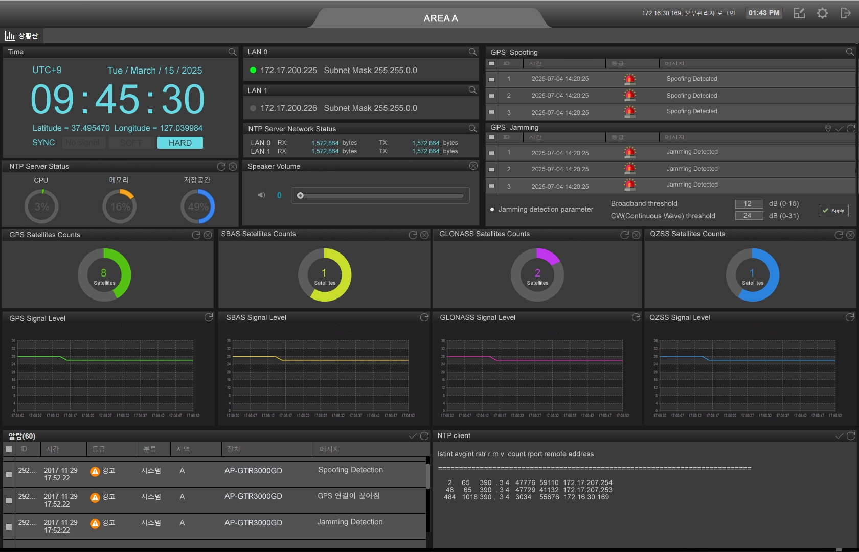 GPS ½Ã°¢µ¿±â ¼¹ö GNSS ´ë½Ãº¸µå (Dash Board) ¼ÒÇÁÆ®¿þ¾î (¿É¼Ç)